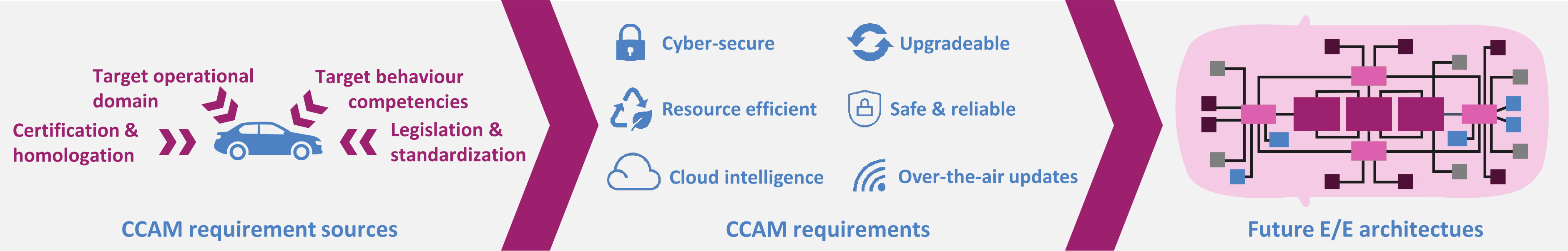 Mission: EEA4CCAM will perform a paradigm shift regarding in-vehicle ECAs by developing a centralized and upgradable design that integrates HW/SW co-design, enables smart data flows, and ensures safe and cyber-secure operation.